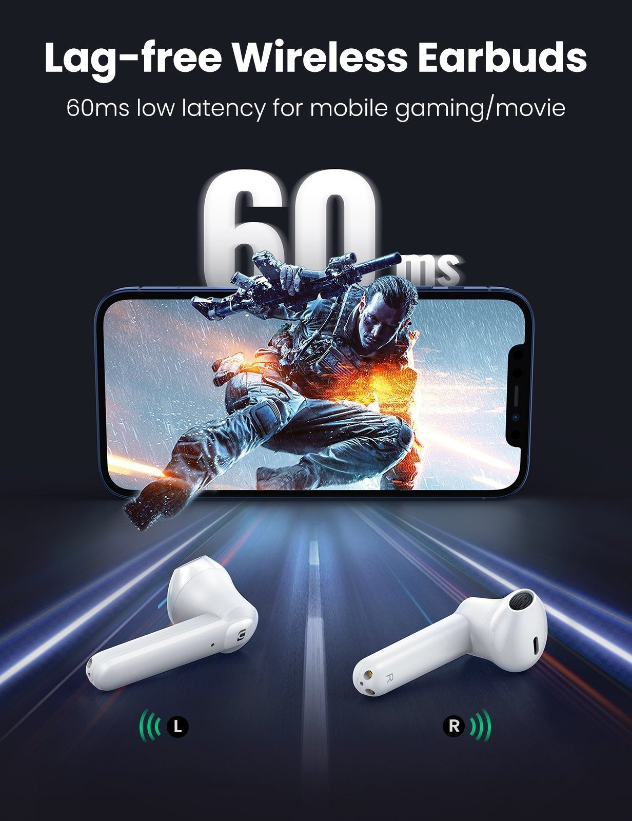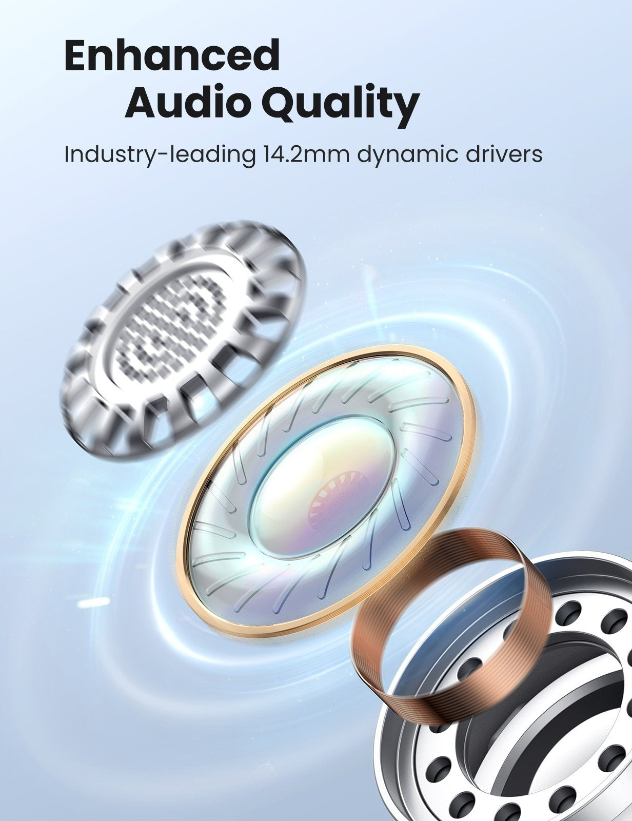 Each earbud comes with 2 advanced microphones, one effectively reduces the background noise and the other one picks up and enhances your voice, ensuring crystal-clear phone calls even in a noisy background.