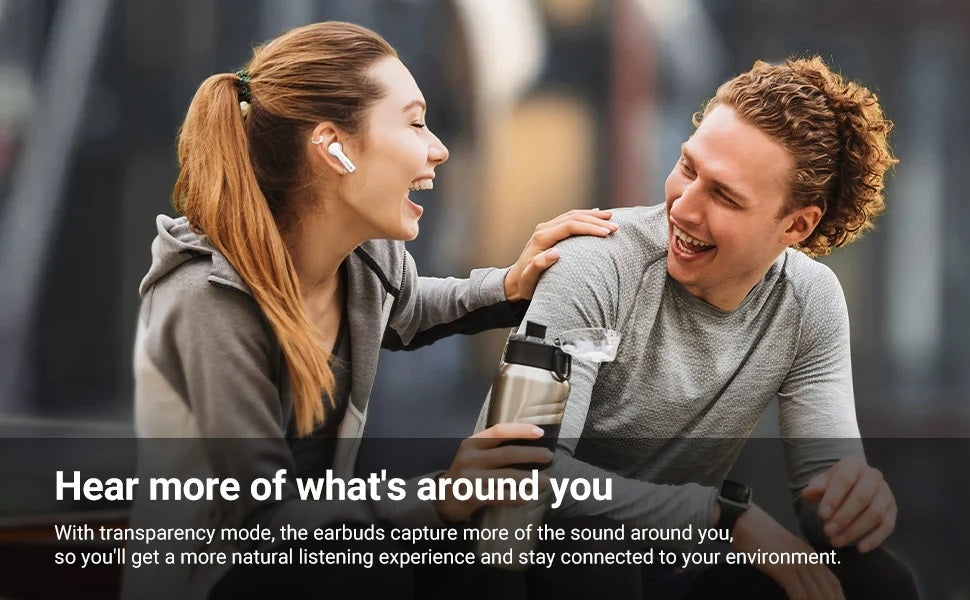 Specifocatopms:Bluetooth Version: Bluetooth5.3 Bluetooth Profiles:HFP, AVRCP, A2DP Bluetooth Frequency: 2400MHz-2483.5MHz Bluetooth Range: 10m/32.8ft Codes: AAC, SBC Frequency Response: 20Hz-20kHz Max. RF output Power: 4dBm Charging Case Battery: Polymer Lithium-ion Charging Case Input: 5V, 320mA Charging Case Output: 5V, 100mA Charging Port: USB-C Charge Earbuds: 1.5hours Charge charging case: 2hours