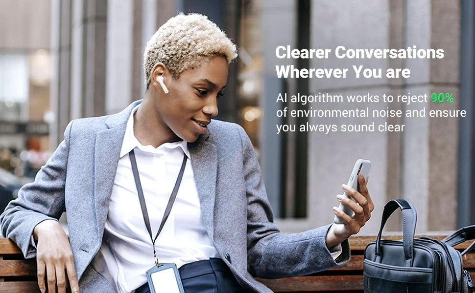 HiTune T3 Bluetooth Headphones with AI algorithm for superior vocal enhancement and background-noise suppression to ensure you're heard clearly on the other end wherever you are.